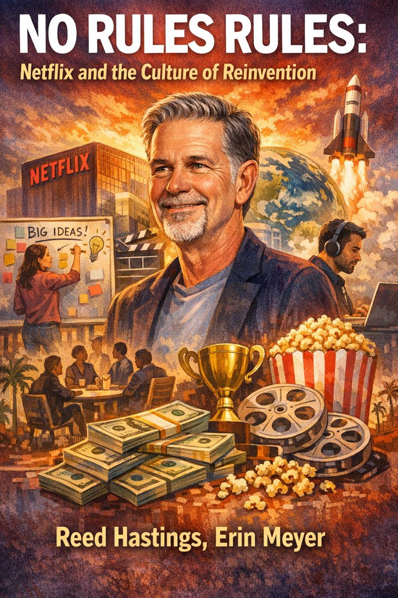 Are you ready to shatter the conventional wisdom of management and unlock the true potential of your team? "No Rules Rules: Netflix and the Culture of Reinvention" by Reed Hastings and Erin Meyer offers a revolutionary blueprint for building a high-performing organization that thrives on freedom, responsibility, and radical transparency. Forget rigid policies and micromanagement; this book dives deep into the audacious culture that propelled Netflix to global dominance. You'll discover the power of assembling a team of stunning colleagues, the art of speaking your mind with positive intent, and why removing traditional vacation and expense approval policies can actually unleash creativity and drive. Prepare to rethink everything you thought you knew about employee motivation as you explore how paying top of market and opening the books fosters unparalleled trust and ownership. Learn the secrets behind decentralized decision-making, the crucial 'Keeper Test' for maintaining talent density, and how a culture of continuous feedback can elevate your organization. This isn't just a book about corporate strategy; it's an invitation to embrace a mindset shift. You'll gain actionable insights into leading with context rather than control, adapting to a global landscape, and ultimately, creating a workplace where innovation flourishes not despite the lack of rules, but because of it. The tone is bold, intellectually stimulating, and deeply inspiring, challenging you to question ingrained assumptions and embrace a future of work defined by trust, agility, and extraordinary results. This book promises to equip you with the courage and clarity to reinvent your own organizational culture and achieve unprecedented success.