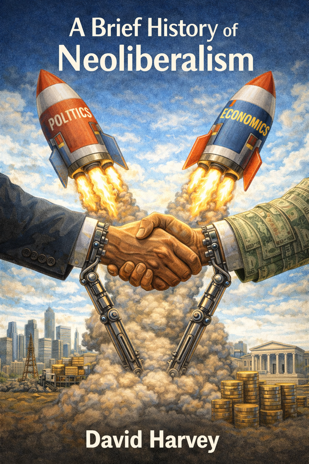David Harvey's 'A Brief History of Neoliberalism' meticulously dismantles the prevailing narrative of neoliberalism, revealing it not as an inevitable economic evolution, but as a historically constructed ideology designed to restore and concentrate elite class power. The core takeaway is that the potent ideals of freedom and dignity, while universally appealing, were strategically co-opted and redefined to serve the interests of capital accumulation, often at the expense of genuine individual liberty and social justice. Harvey demonstrates how the neoliberal state, far from being a minimalist enforcer of free markets, actively intervenes to create a favorable business climate, protect financial interests, and suppress dissent, often employing coercive measures and masking its agenda through the manipulation of 'common sense' and cultural values. The emotional lesson lies in recognizing the profound human cost of this agenda: the exacerbation of inequality, the dispossession of communities, and the creation of a vulnerable, 'disposable' workforce. The practical wisdom offered is a call to critically examine the dominant definitions of freedom, to understand the historical construction of consent, and to challenge the antidemocratic nature of neoliberalism and its associated ideologies. Harvey highlights that true progress often emerges not from strict adherence to neoliberal tenets but from deviations and the pursuit of alternative visions of freedom, such as freedom from want and insecurity. The book ultimately argues that the inherent contradictions within neoliberalism, particularly the tension between market freedoms and social cohesion, are leading to instability and crises, necessitating the formation of broad alliances and deepened democratic practices to forge a more equitable future. The integration of state and business elites, the commodification of life, and the strategic exploitation of crises are not accidental outcomes but deliberate mechanisms of 'accumulation by dispossession.' Recognizing and naming the class struggle disguised by neoliberal rhetoric is therefore essential for dismantling this system and building viable alternatives that prioritize collective well-being and genuine liberty for all.